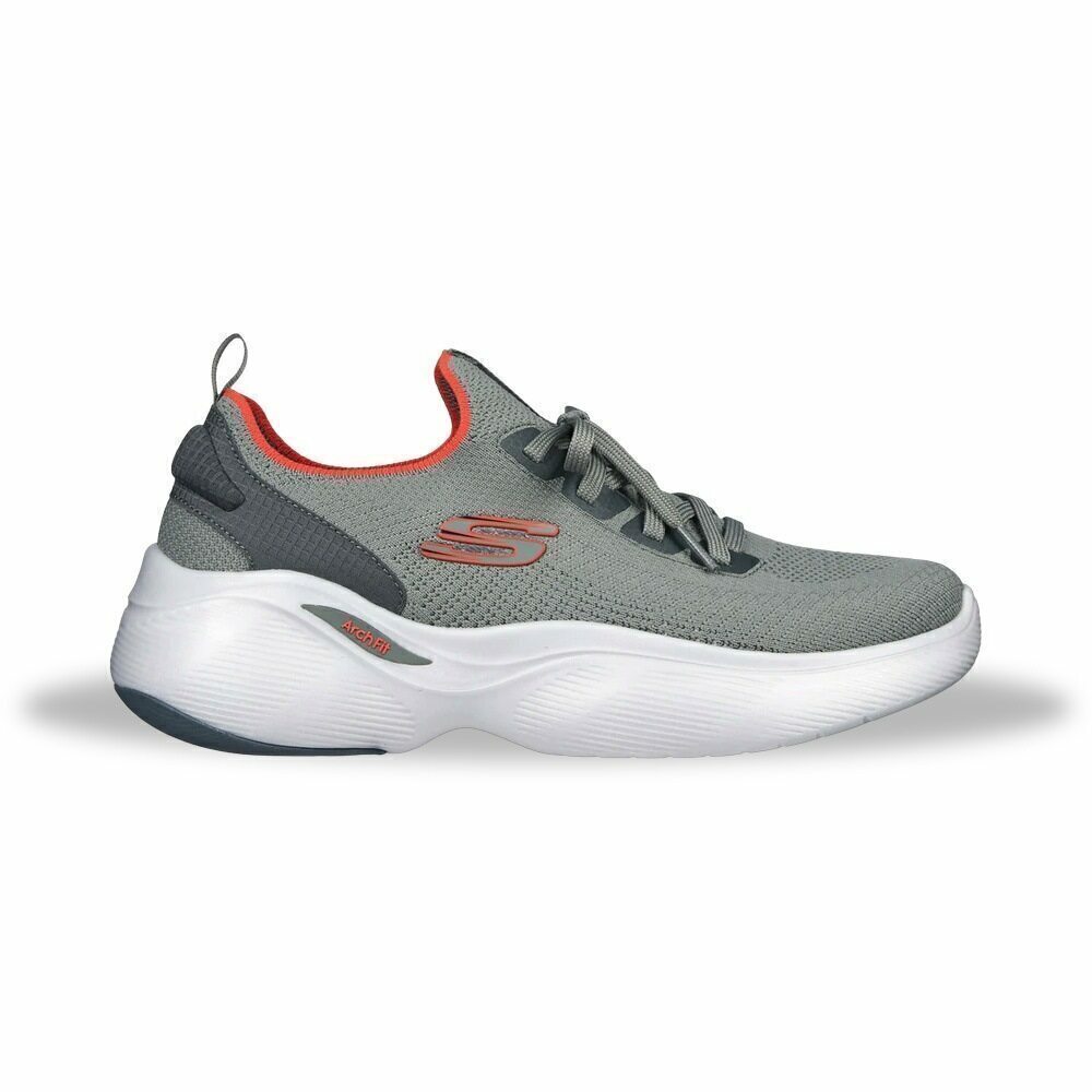 Da un paseo por las nubes con Skechers Arch Fit® Infinity - Stormlight. Este diseño deportivo vegano presenta una parte superior de malla tejida diseñada Stretch Fit® con un frente de encaje fijo y una plantilla Arch Fit® extraíble.